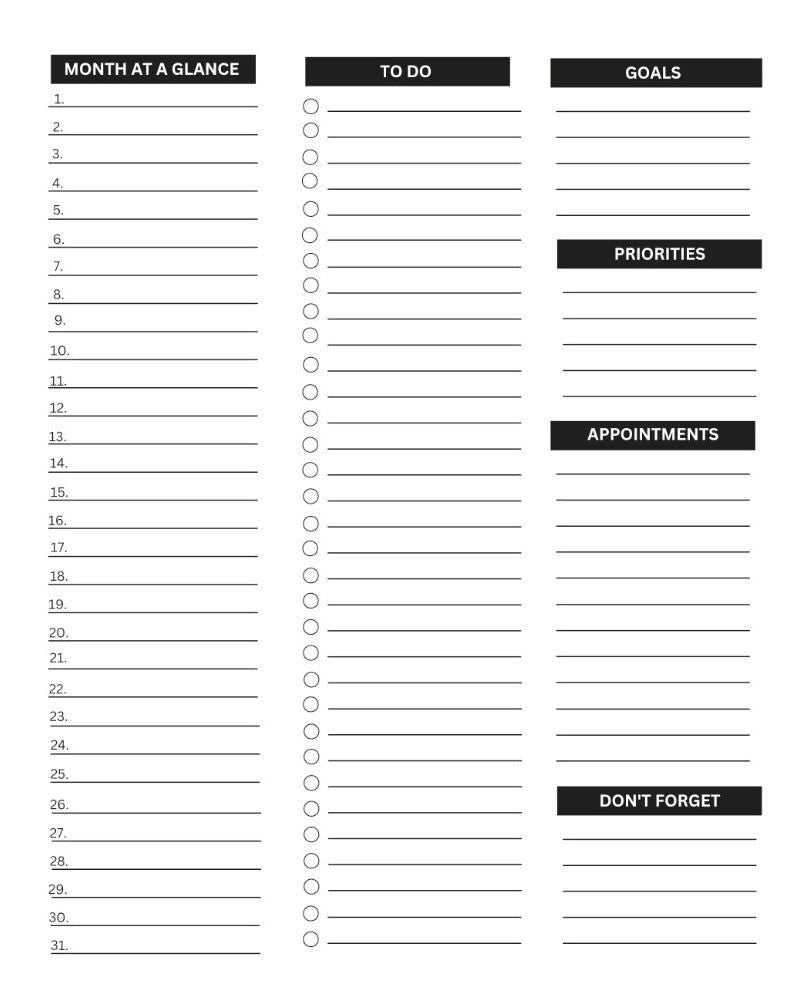 Daily Life Planner: Black Lines