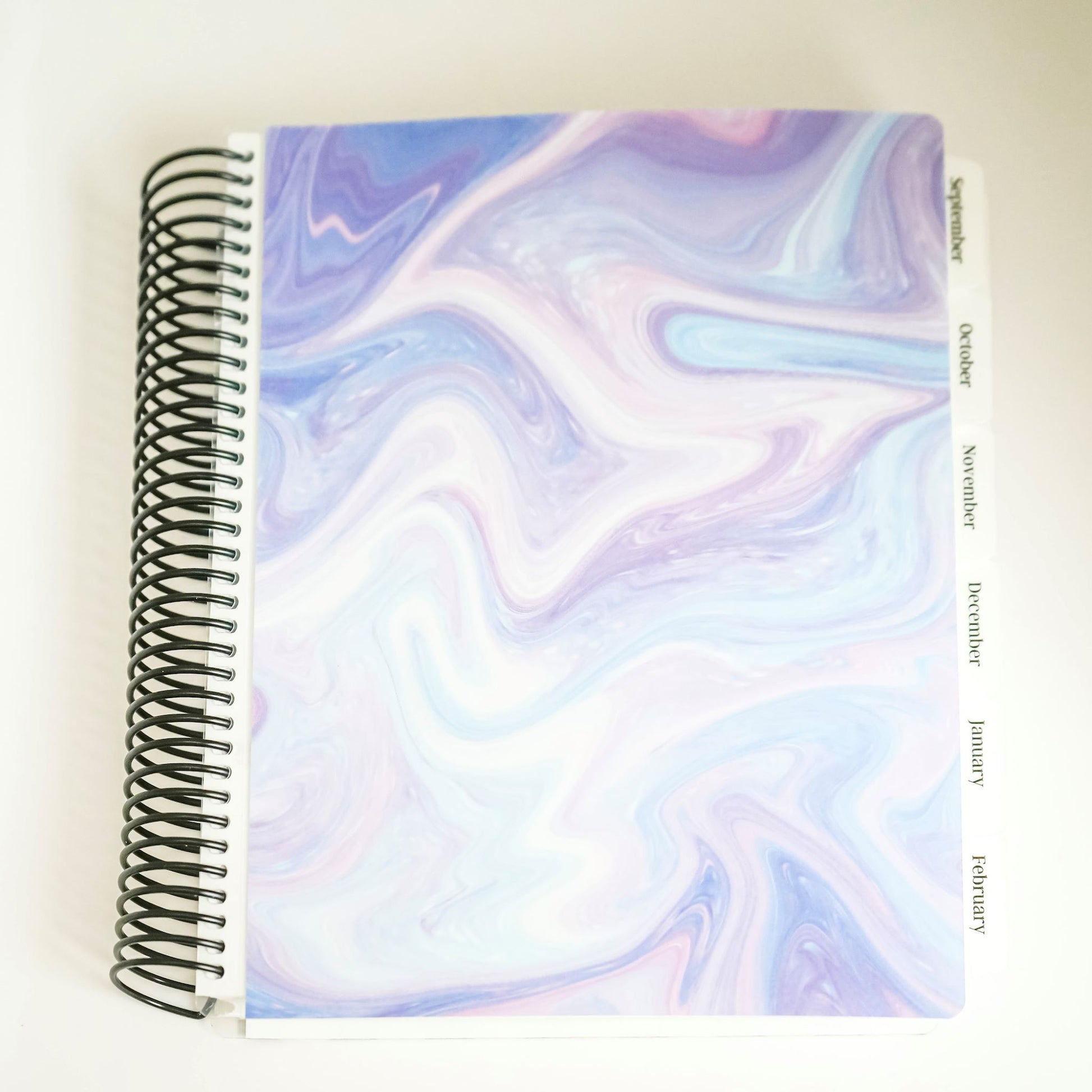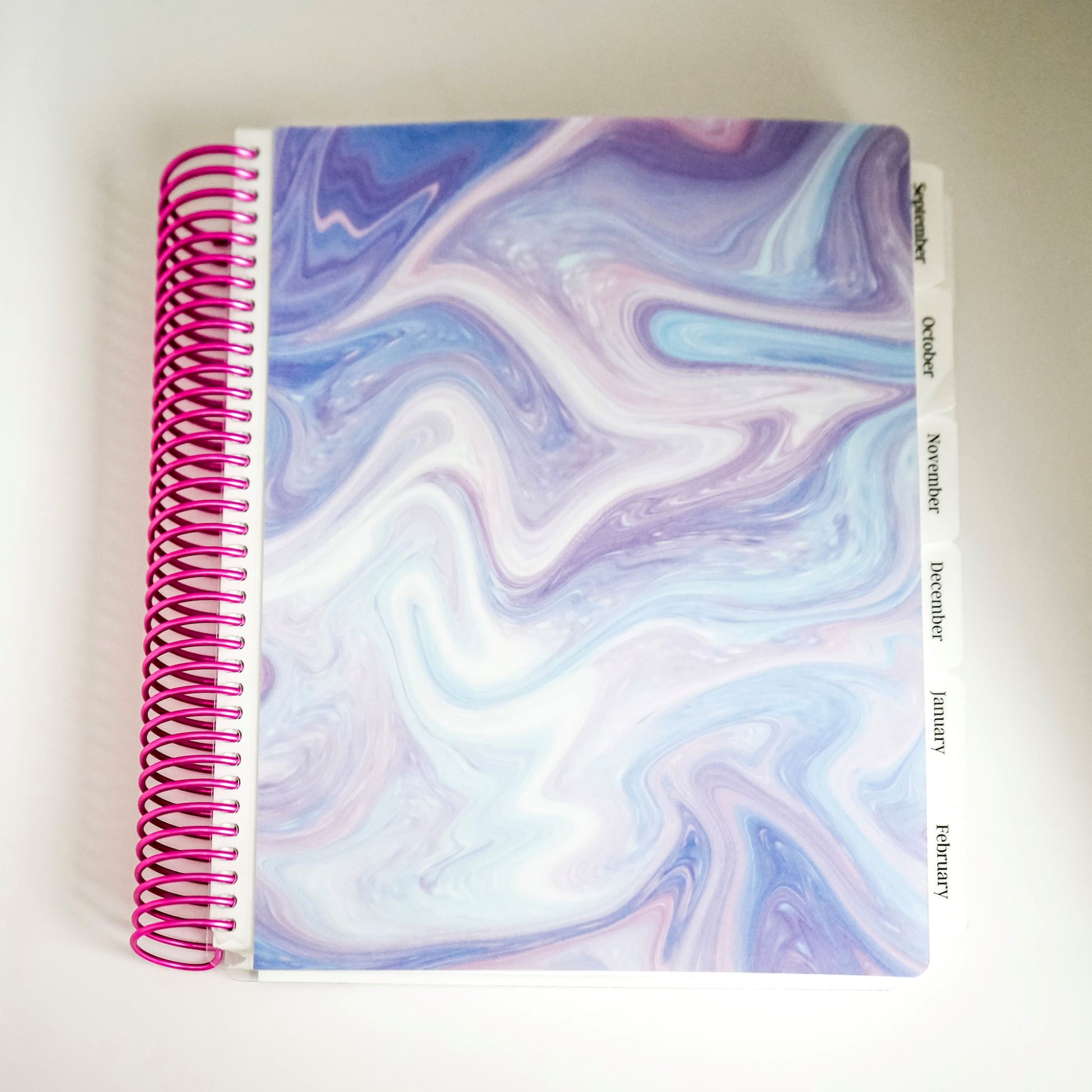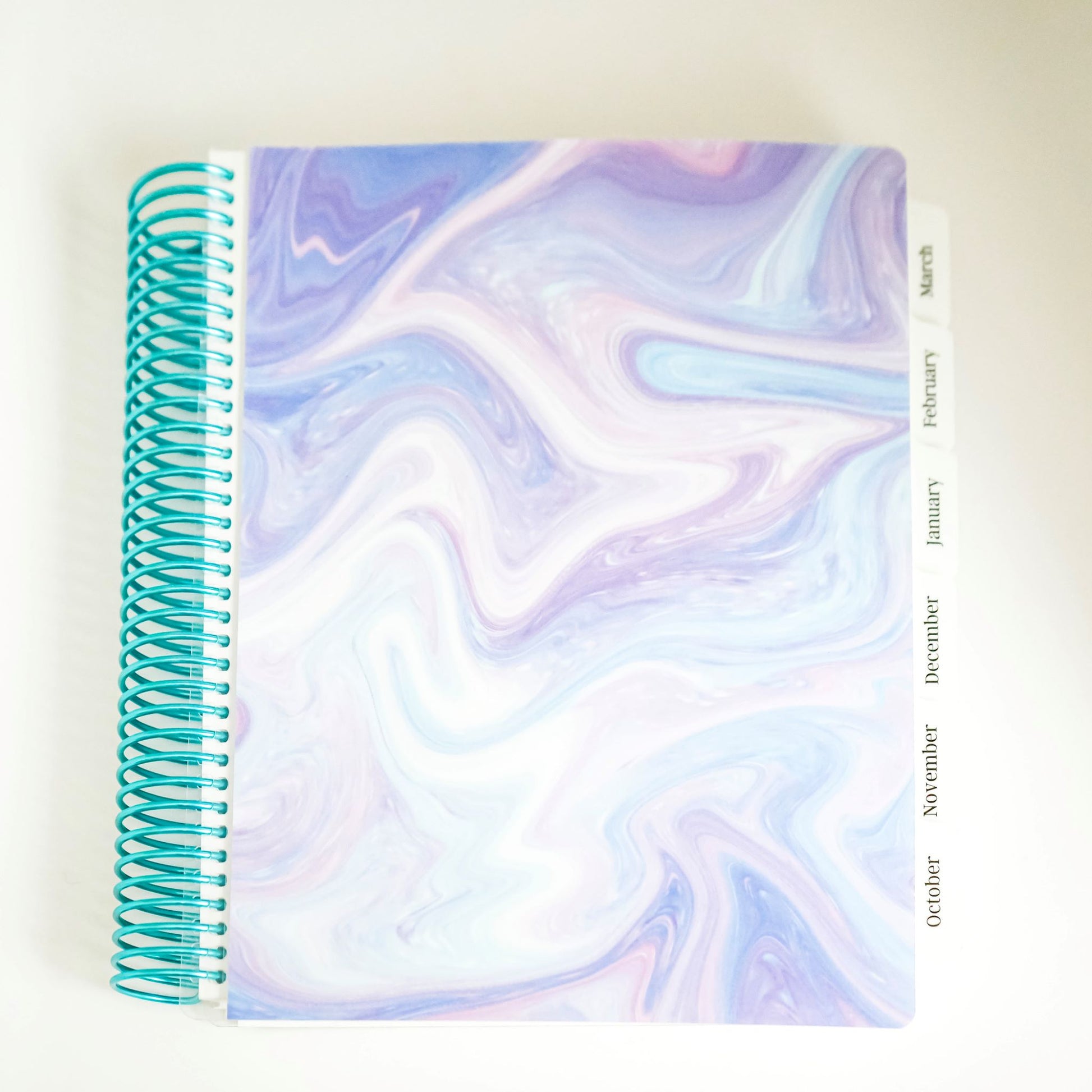 Our daily life planner is a 12-month tool to help you achieve your goals, with clarity and purpose. It is a resource crafted to aid you in structuring and directing your life, both for immediate and future goals. Handcrafted in the USA, and made to order