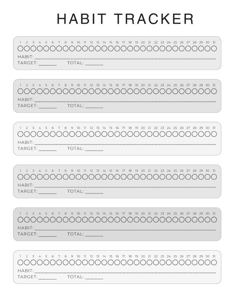 A dedicated monthly habit tracker so you can follow your consistency across the entire month at a glance.